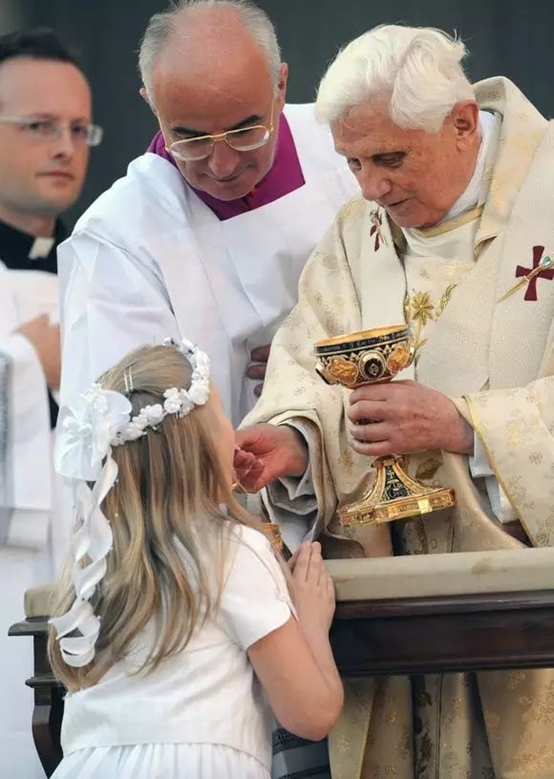 【请口领圣体!】「信众甚至被禁止去触摸祭器,或是用手领圣体。」——教宗圣思道一世