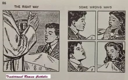 2、手挡住下巴,使得圣体盘不能在嘴下面接住可能掉下来的圣体。3、抬头,不伸舌头。