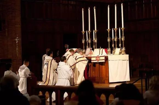 4、低头,看着圣体栏杆而不看圣体。